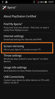 - For Sony: Go to Settings > Wireless & Network > More > Screen Mirroring